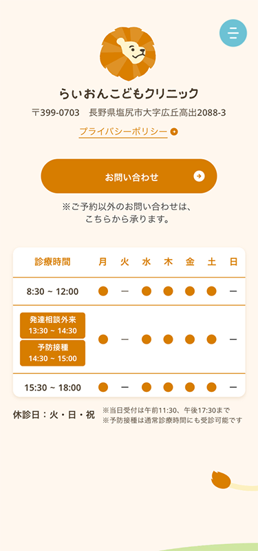 一緒に、元気に、すこやかに。 らいおん先生のいる こわくない小児科クリニック