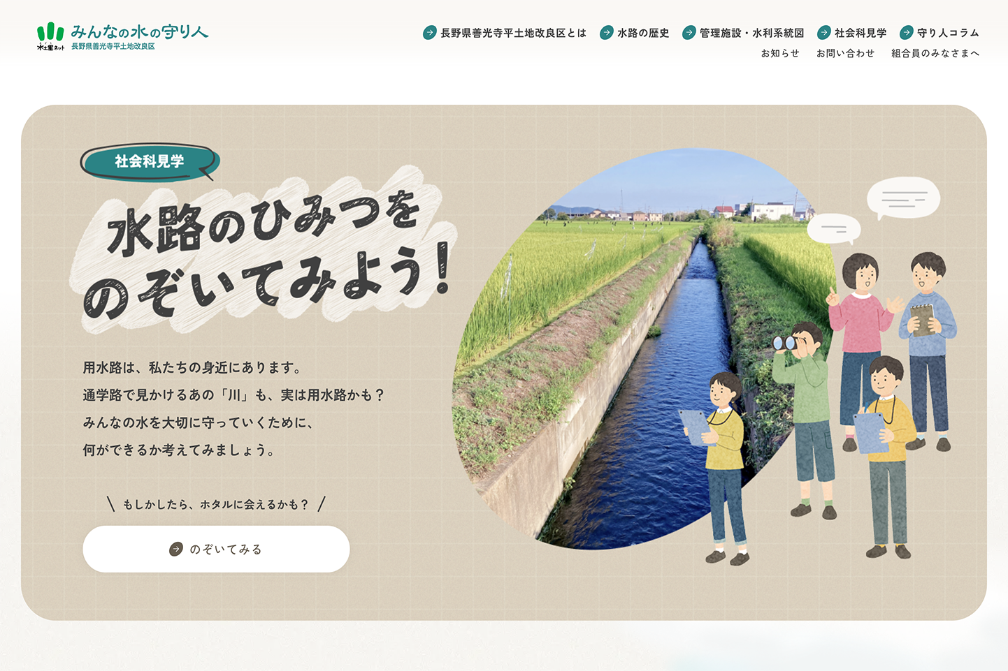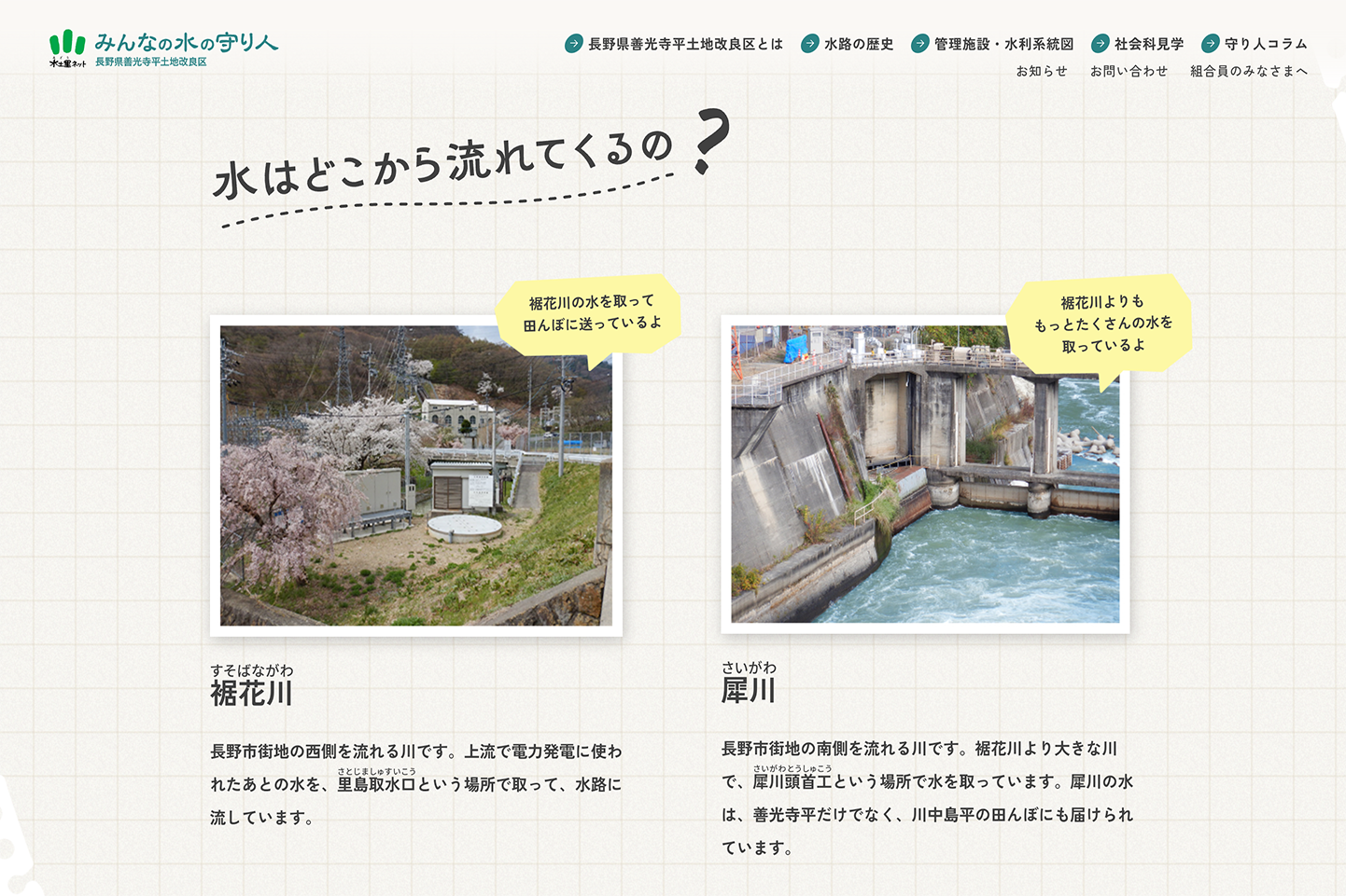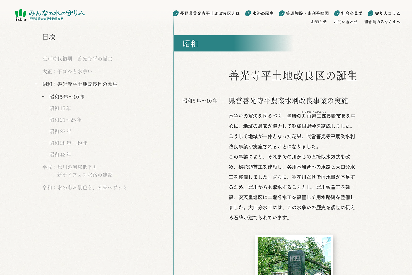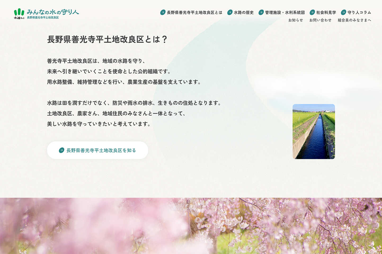 長野市を拠点に、善光寺平地域の水路を守る公的組織「長野県善光寺平土地改良区」様のWebサイトを制作しました。
